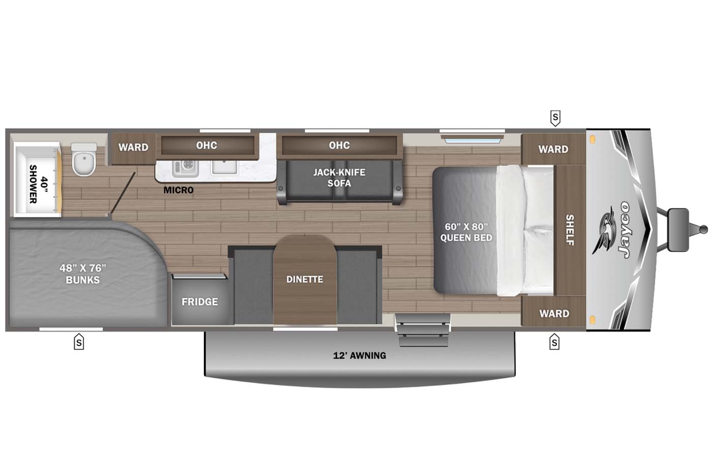 GET YOUR TERMSThe Jayco Jay Flight SLX 250BH Sport travel trailer is an incredibly affordable and family-friendly bunkhouse, designed to make your adventures accessible without compromising on quality. This spacious RV comfortably sleeps up to eight, featuring double-size bunks and a front queen bed, ensuring ample space for everyone. Built with Jayco's renowned high quality, including a Magnum Truss™ Roof System, the 250BH Sport offers exceptional durability and reliability on the road. Furthermore, every Jayco RV comes with an industry-leading warranty, providing unparalleled peace of mind and making it a smart and secure investment for years of family fun.